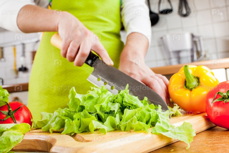 Женские руки нарезают овощи