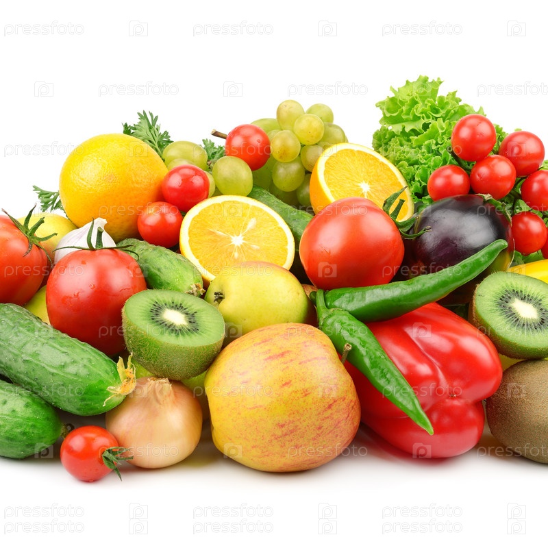 Фрукты и овощи, изолированные на белом фоне