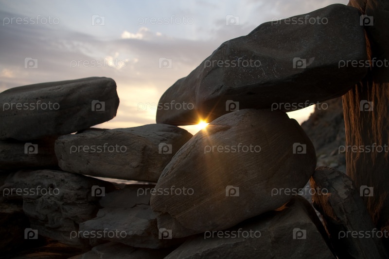 Вид на солнце сквозь камни