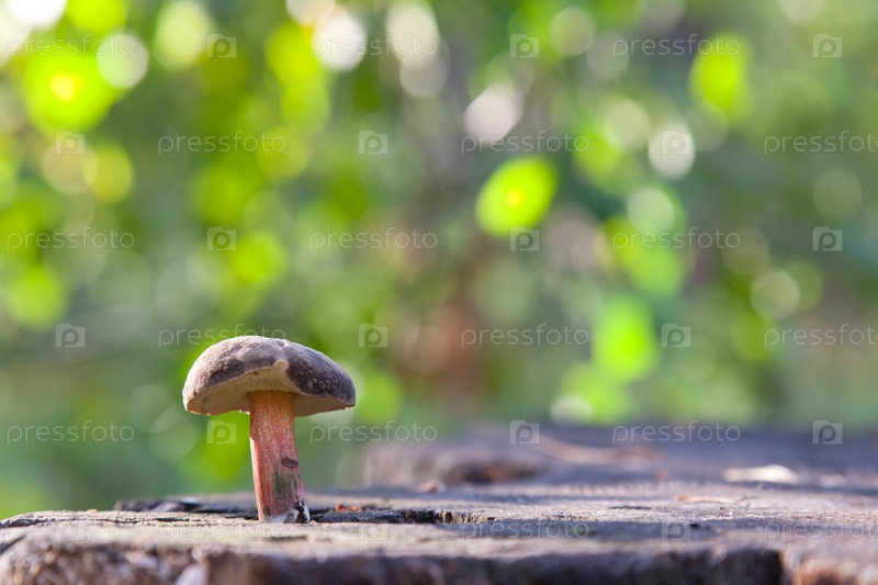 Гриб масленок на пне в лесу