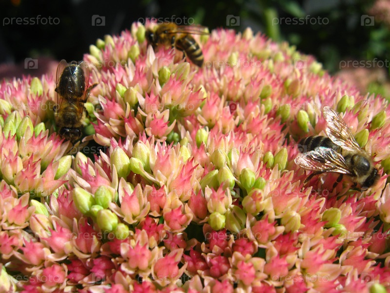 Пчелы собирают нектар на цветке
