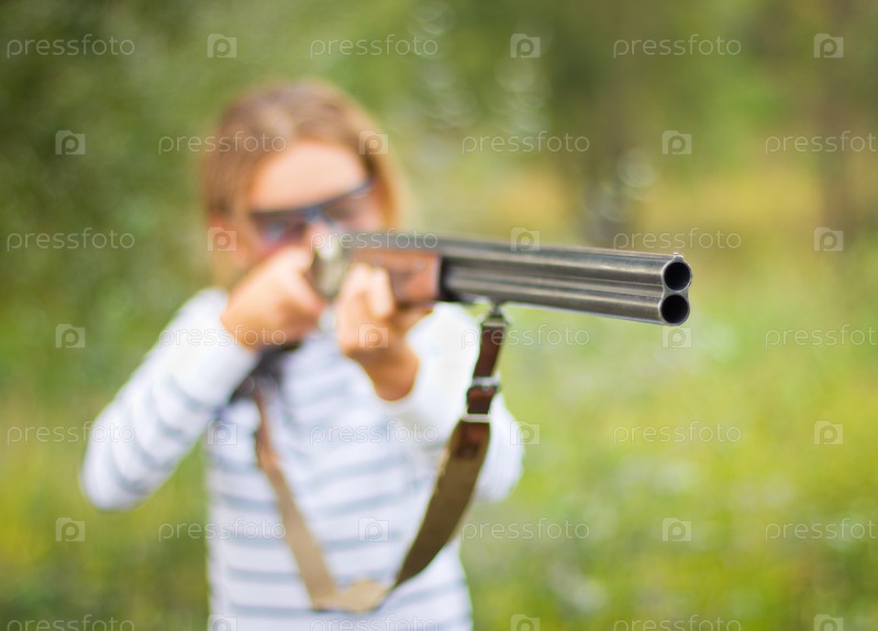 Молодая девушка с ружьем для фотоохоты