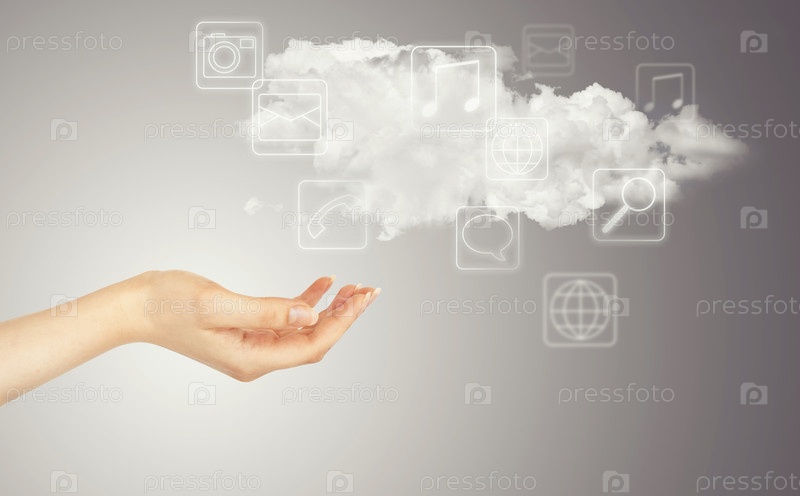 Рука, облако и мультимедийные значки