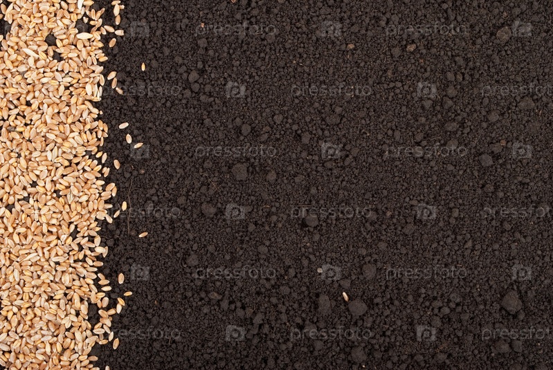 Зерна пшеницы на почве
