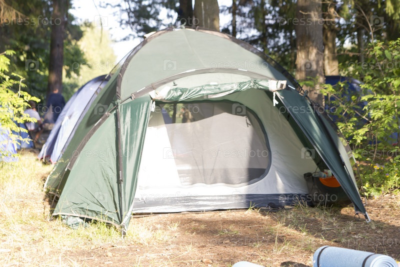 Палатка на траве в лесу