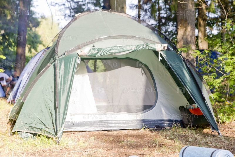 Палатка на траве в лесу