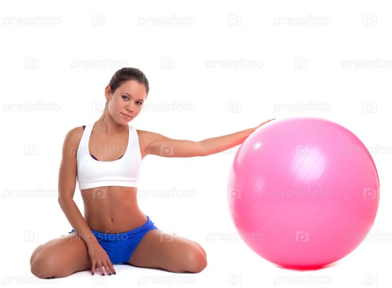 Женщина с фитболом, изолировано