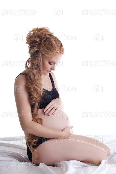 Молодая беременная женщина в черном белье
