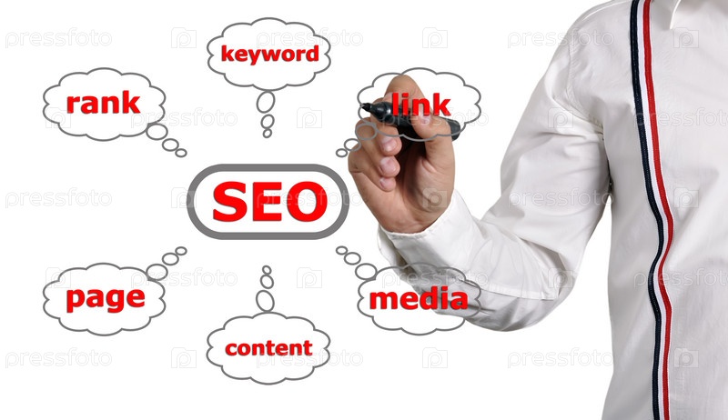 Бизнесмен рисует схему seo