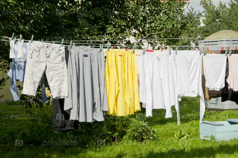Белье сушится на веревках