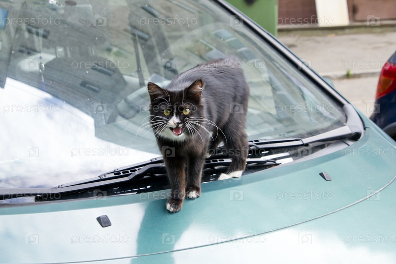 Кошка на зеленом автомобиле