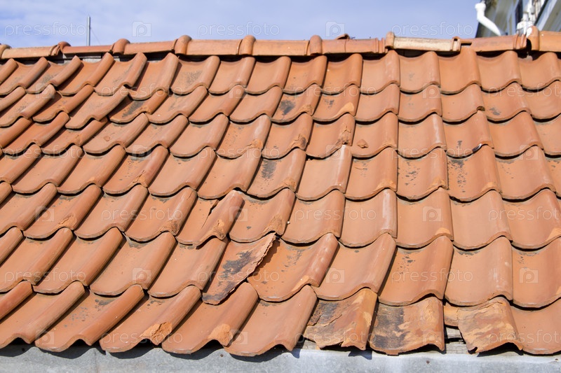 Красная черепичная крыша, водосточная система и чердак