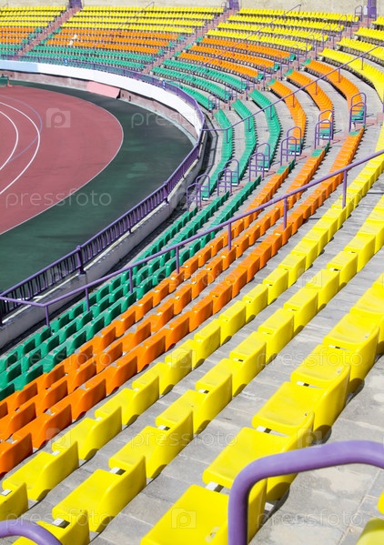 Ряды пластиковых сидений на стадионе