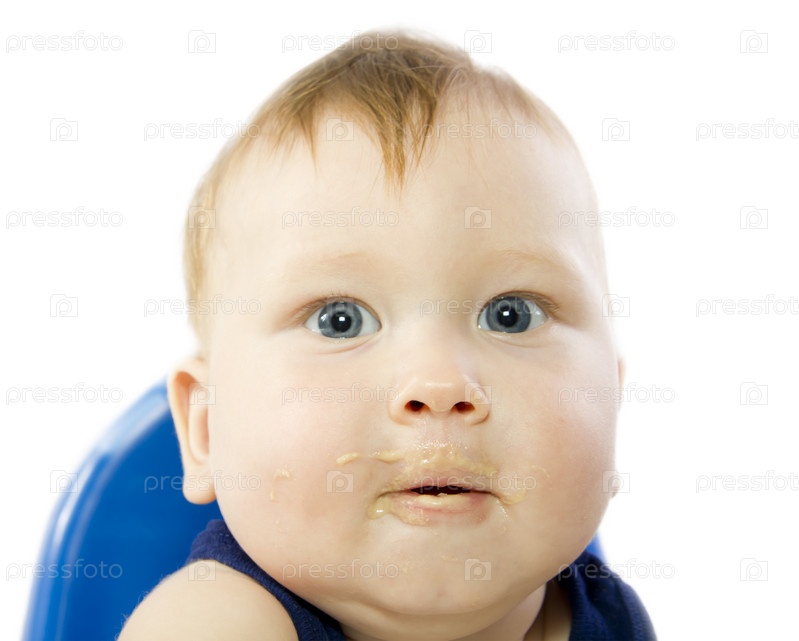 Сероглазый ребенок ест кашу