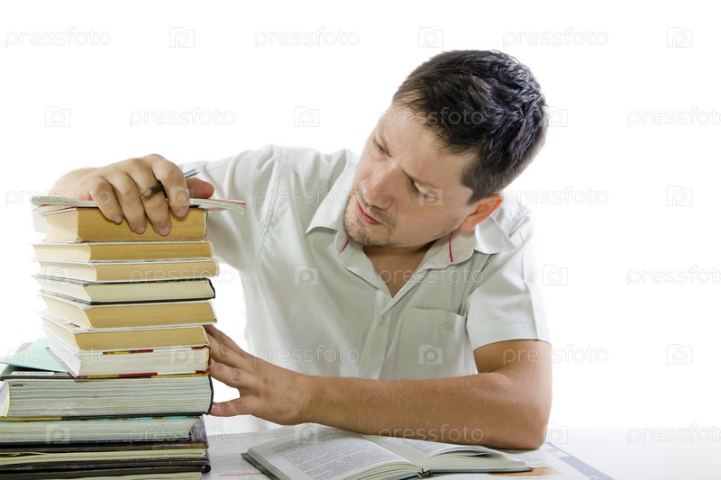 Мужчина читает книгу в библиотеке