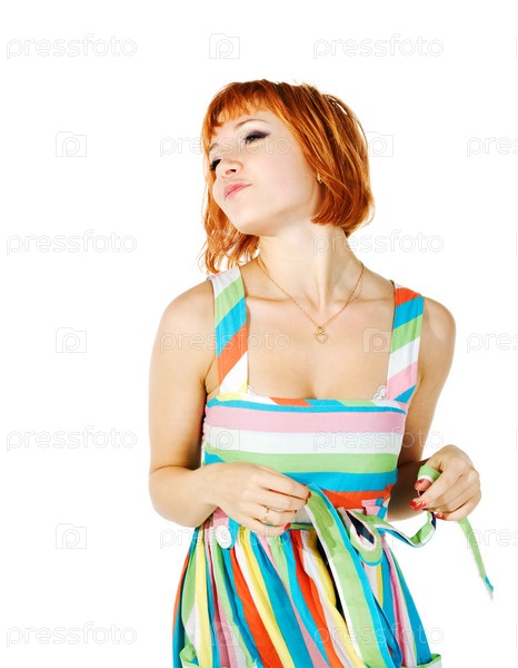Красивая рыжая девушка на белом фоне