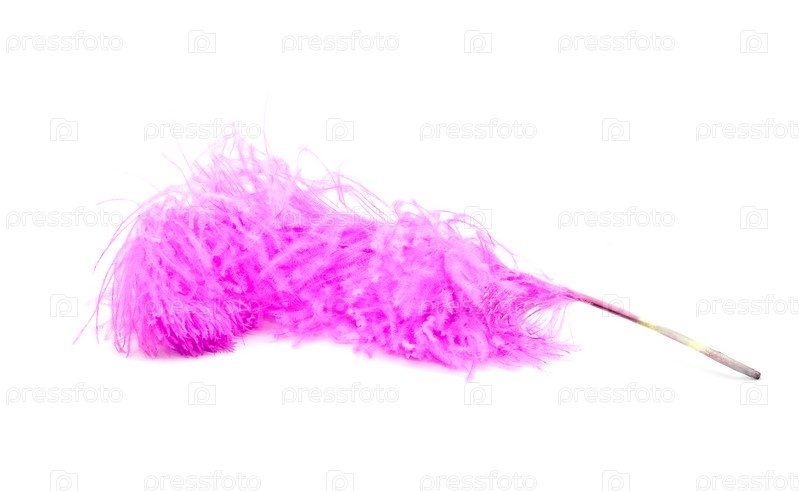 Розовое страусиное перо на белом фоне