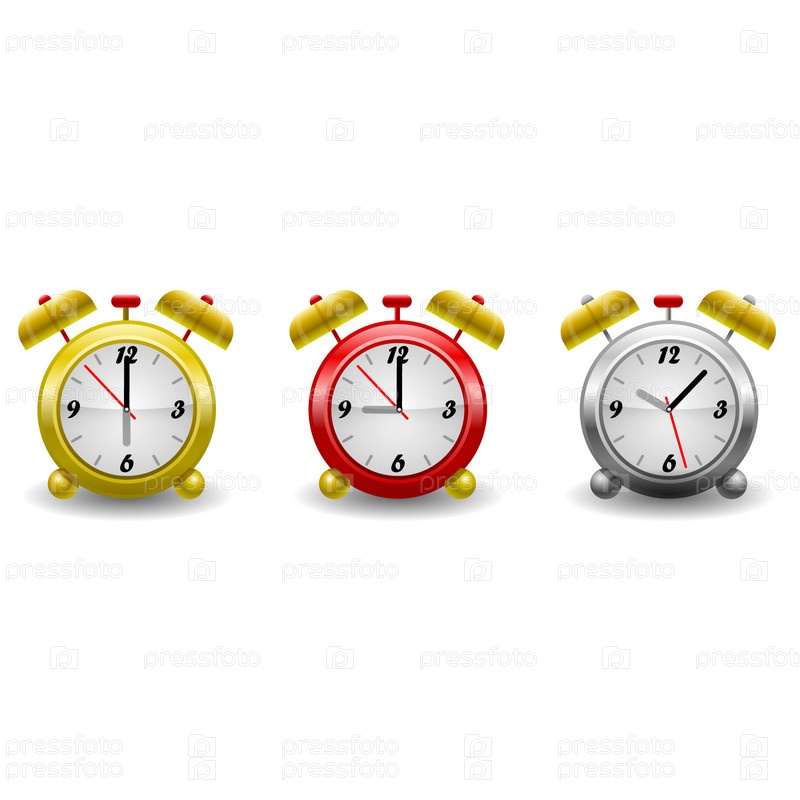 Три разноцветных будильника