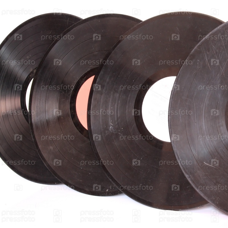 Музыкаьные виниловые пластинки на белом фоне