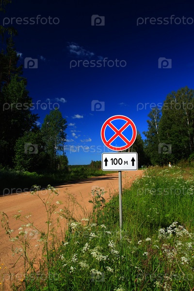 Дорожный знак на сельской дороге