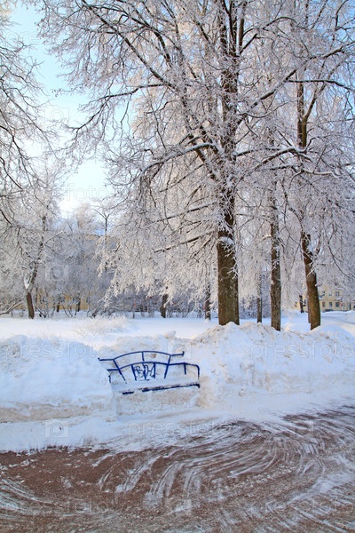 Деревянная скамья в городском парке
