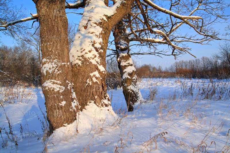 Старый дуб, освещенный ярким солнцем
