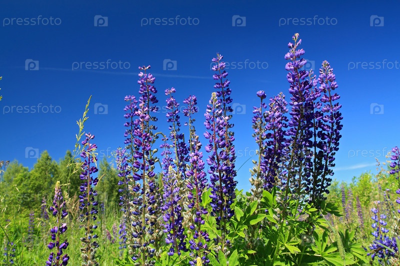 Синий люпин на летнем поле