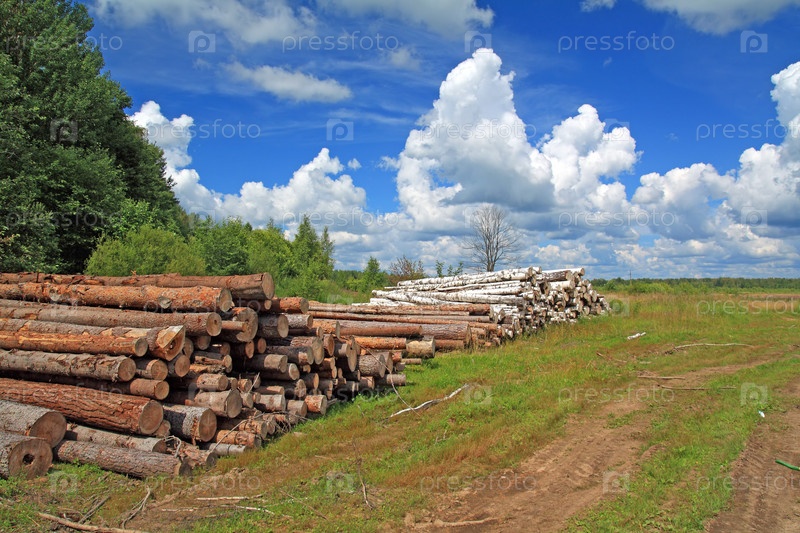 Древесина в поле рядом с лесом