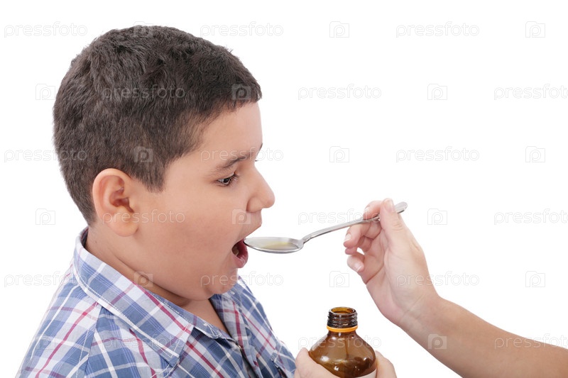 Ребенок принимает лекарства от гриппа