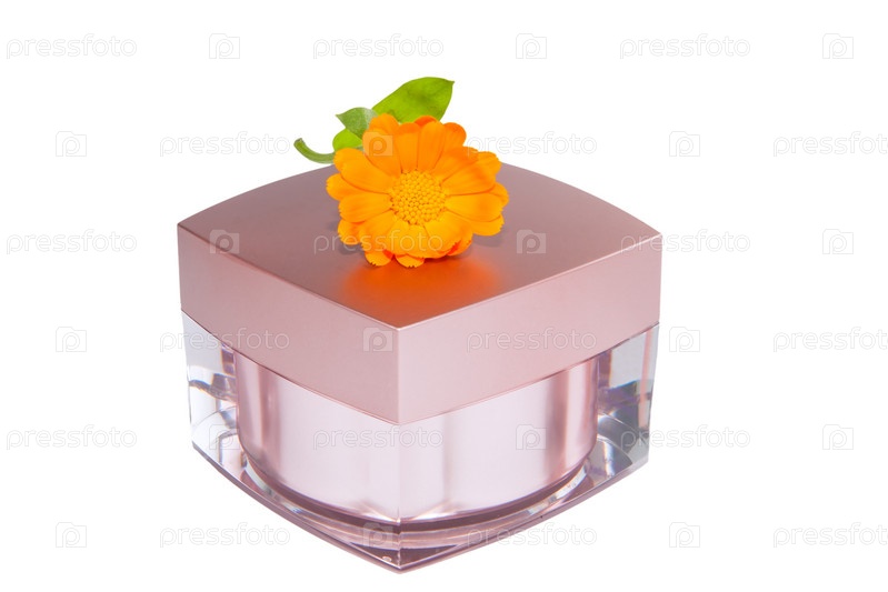 Баночка крема и цветок календулы