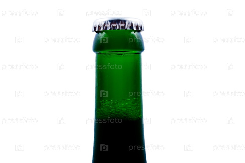 Бутылка пива крупным планом, изолированная на белом фоне