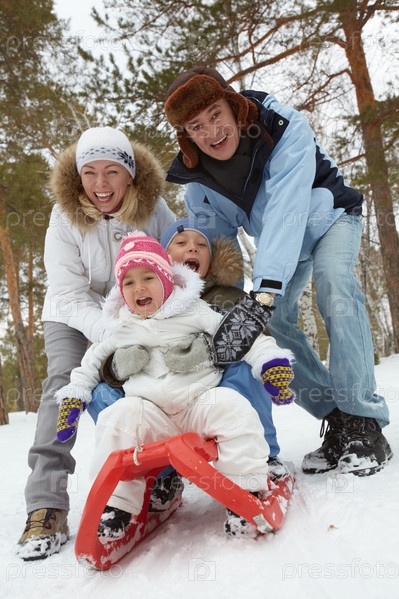 Семья на санях