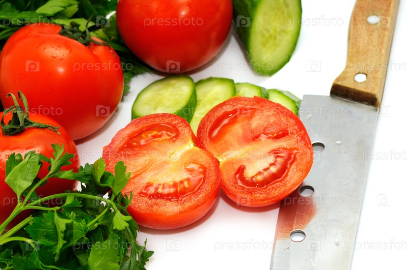 Томаты, огурцы и петрушка