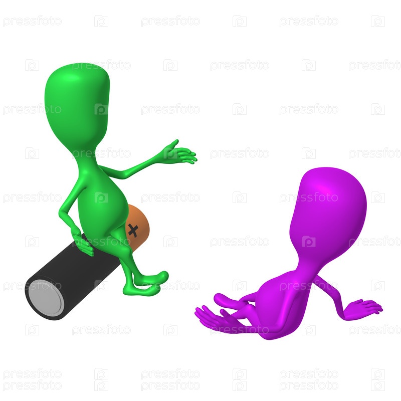 Человечек сидит на батарейке и спорит с другим