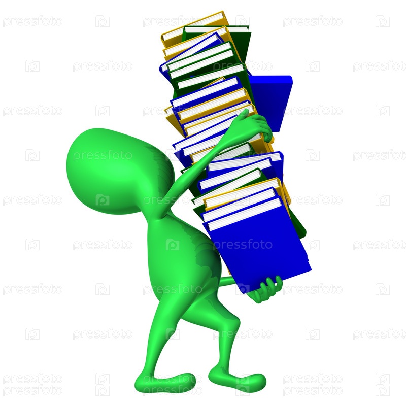 Человечек несет тяжелую стопку книг