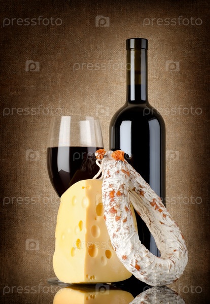 Вино, колбаса и сыр