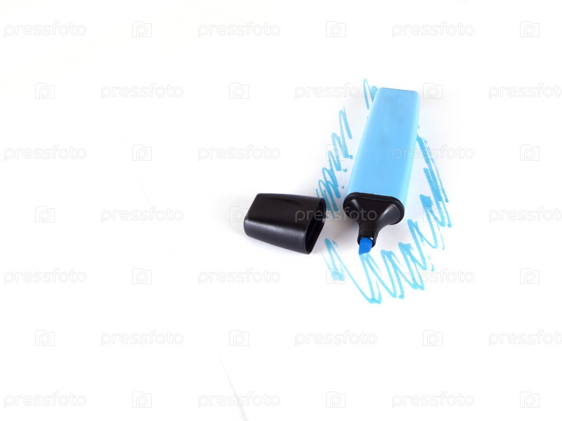Синий маркер и нарисованные темно-синие линии