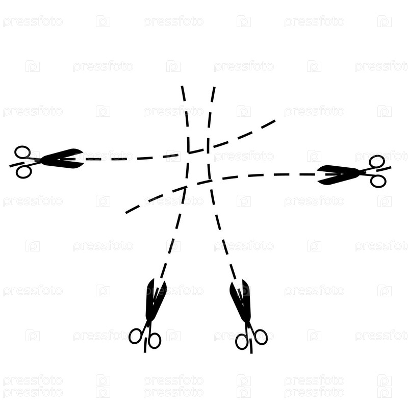 Силуэт ножниц и пунктирные линии. Векторная иллюстрация