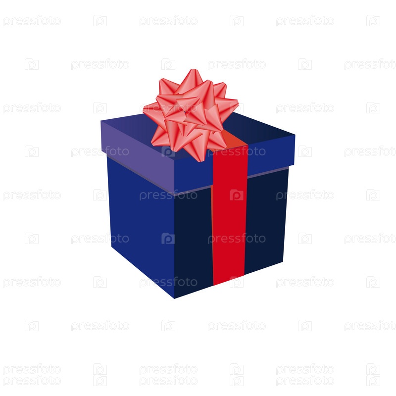 Синяя подарочная коробка с красной лентой