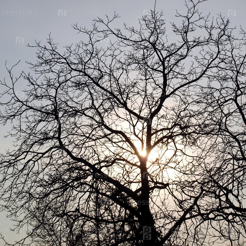 Силуэт дерева на фоне солнца
