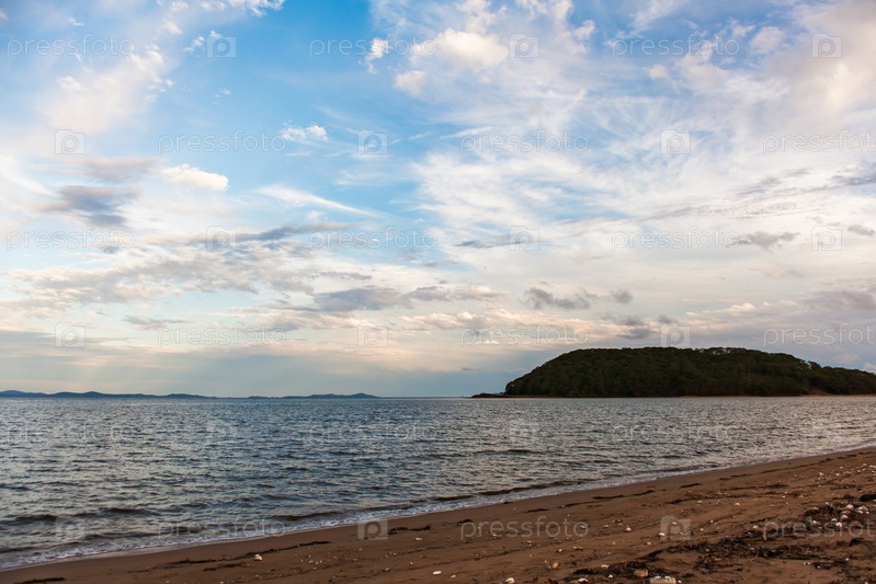 Красивый яркий закат на берегу Японского моря
