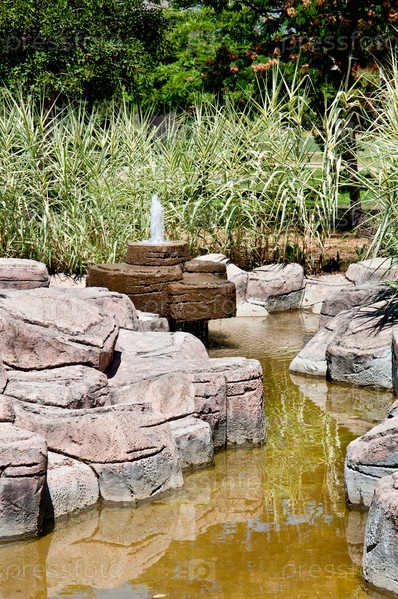 Ландшафтный дизайн - каменный фонтан и пруд