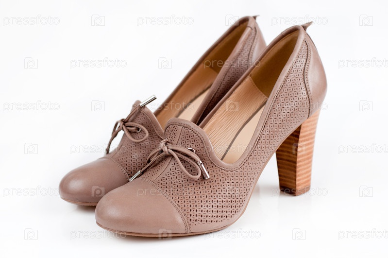 Бежевые женские туфли на светлом фоне