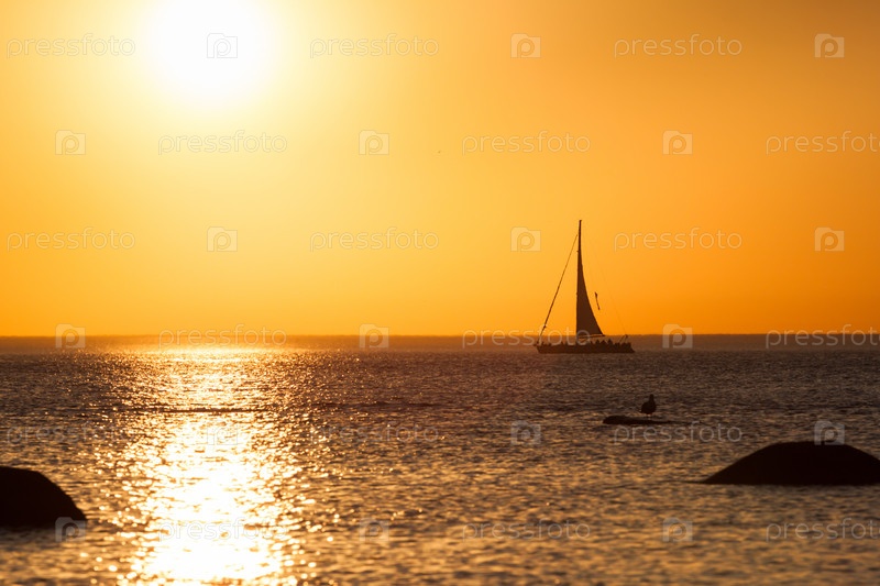 Силуэт парусной лодки еа закате