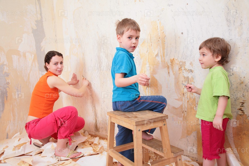 Дети помогают маме делать ремонт