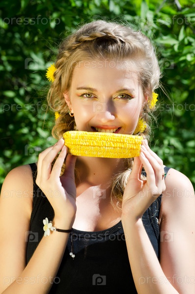 Женщина ест кукурузный початок