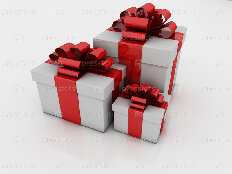 Белые подарочные коробки с лентами и повязками, изолированные на белом фоне. 3D-рендеринг, высокое разрешение