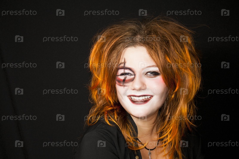 Хэллоуин. Макияж на лице молодой женщины