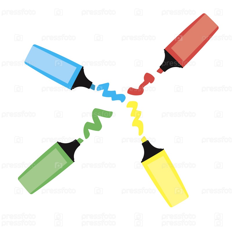 Маркеры четырех цветов. Векторные иллюстрации