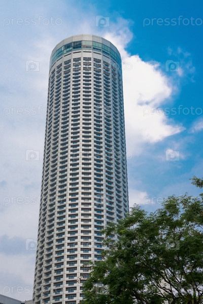 Небоскреб и дерево на фоне неба